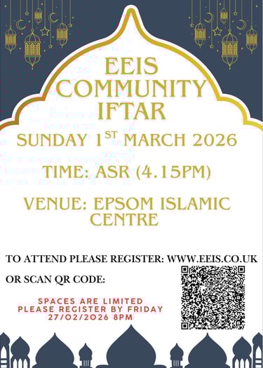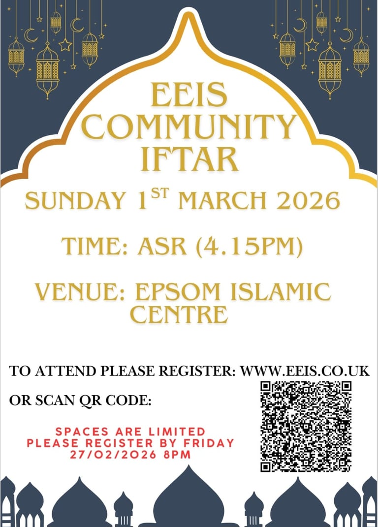 Epsom & Ewell Islamic Society are delighted to invite you to our Community Iftar Event.